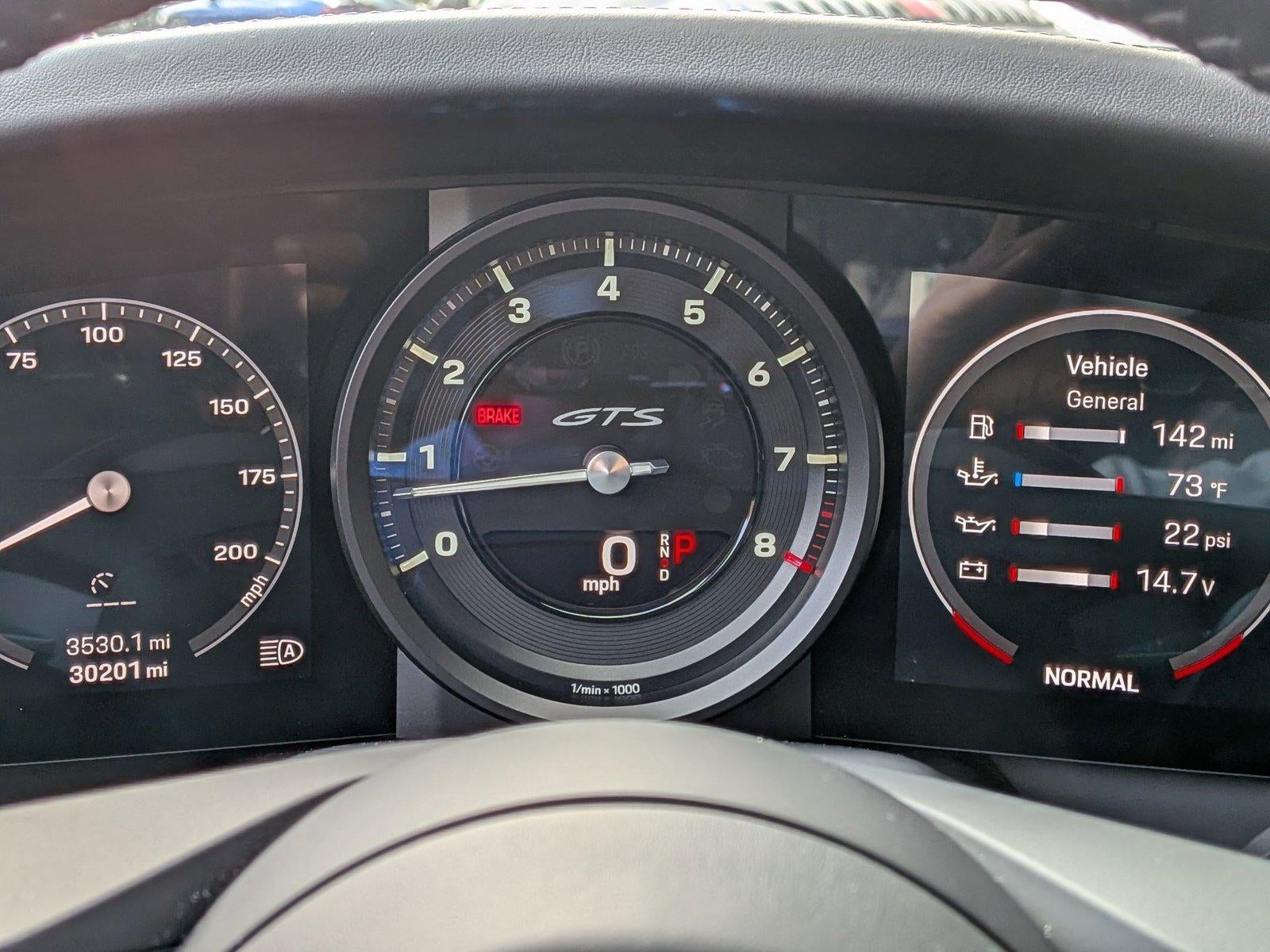 Contact Porsche of Orlando today for information on dozens of vehicles like this 2022 Porsche 911 Carrera GTS. This Porsche includes: 23.7 GAL. EXTENDED RANGE FUEL TANK BLACK, LEATHER SEAT TRIM W/LEATHER INTERIOR Leather Seats BOSE SURROUND SOUND SYSTEM Premium Sound System HEATED GT SPORT STEERING WHEEL IN LEATHER Heated Steering Wheel Leather Steering Wheel ELECTRIC SLIDE/TILT SUNROOF Generic Sun/Moonroof Sun/Moonroof 14-WAY POWER SPORT SEATS W/MEMORY PACKAGE Mirror Memory Seat Memory Power Passenger Seat Adjustable Steering Wheel Power Driver Seat Passenger Adjustable Lumbar Driver Adjustable Lumbar Bucket Seats *Note - For third party subscriptions or services, please contact the dealer for more information.* This Porsche 911 has been loved by its original owner as CARFAX shows it to be a one-owner. This is a Certified Pre-owned vehicle, so you can feel rest assured that it has been meticulously inspected from top to bottom. Today's luxury vehicle is not just about opulence. It's about a perfect balance of performance, comfort and attention to detail. This 2022 Porsche 911 Carrera GTS is the perfect example of the modern luxury. Exceptional in every sense of the word, this incredibly low mileage vehicle is one of a kind. Added comfort with contemporary style is the leather interior to heighten the quality and craftsmanship for the Porsche 911 Carrera GTS. If you are looking for a pre-owned vehicle that looks brand-new, look no further than this Guards Red Porsche 911. This Porsche 911 Carrera GTS is covered under the Porsche reliable & trusted factory warranty. So, if you're in the market for an incredible vehicle which provides the manufacturer-backed assurance that everyone deserves, then this is the vehicle for you. Some vehicles are more of a need-to-have. This one is a absolutely-must-have. If it's looks aren't enough to persuade you, the feel of the powerhouse under the hood most definitely will. Treat yourself to a wonderful driving experience in this wel- optioned Porsche 911 Carrera GTS. Equipped with the latest in driver comforts, this Porsche is the benchmark of modern automotive engineering.